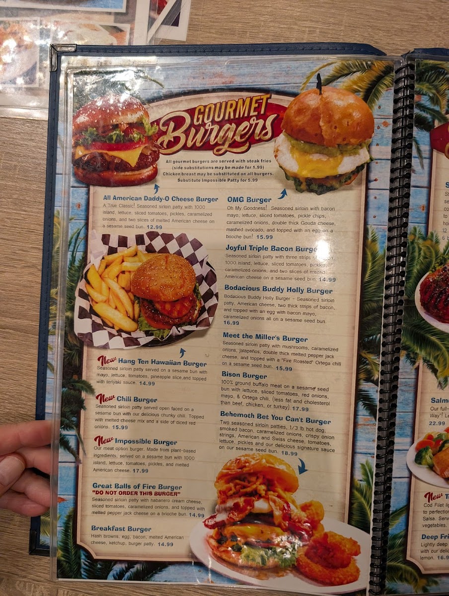 If you're in the mood for burgers, you must try the Behemoth Bet You Can't Burger. This colossal creation boasts two seasoned sirloin patties stacked high with a 1/3lb hot dog, smoked bacon, caramelized onions, and a medley of cheeses, topped with fresh veggies and signature sauce. It’s a feast fit for any appetite and priced to satisfy at $18.99.